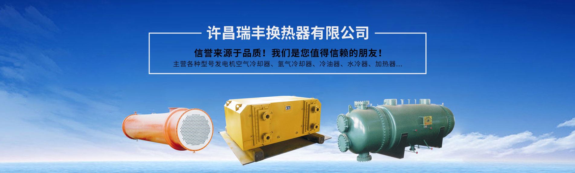 許昌瑞豐換熱器有限公司生產(chǎn)、維修各種型號發(fā)電機空氣冷卻器、氫氣冷卻器、冷油器、水冷器、加熱器等換設(shè)備。